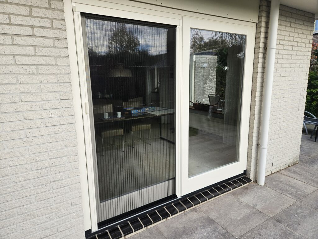 Als optie is het mogelijk om een plisséhor toe te voegen aan de schuifpui. Hiermee kunt u eenvoudig ventileren terwijl insecten buiten blijven, zonder dat dit afbreuk doet aan het uiterlijk of het gebruiksgemak van de schuifpui.